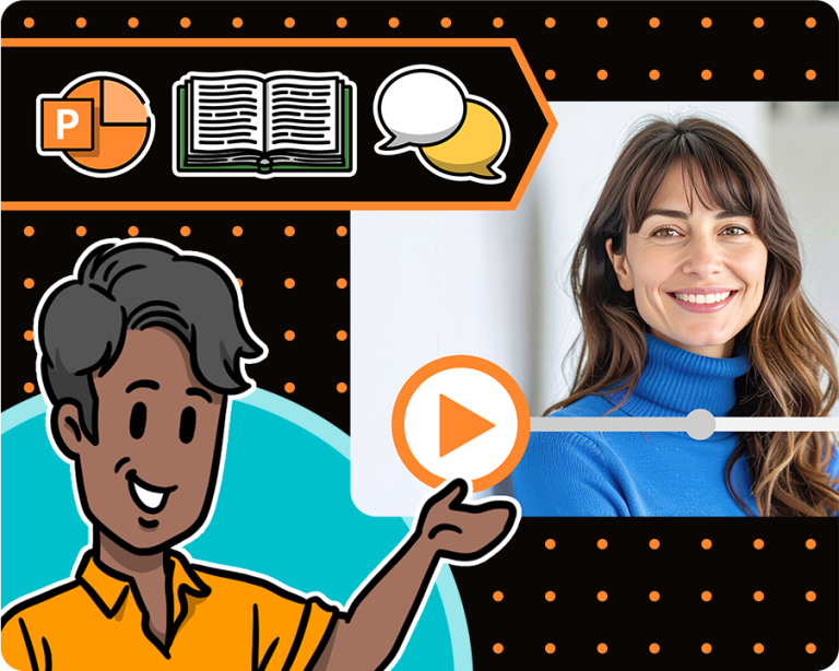 Upload your PowerPoint file and select a visual style. In just a few minutes, you’ll have a video featuring a professional narrator and an optional AI avatar to guide your audience through the content.