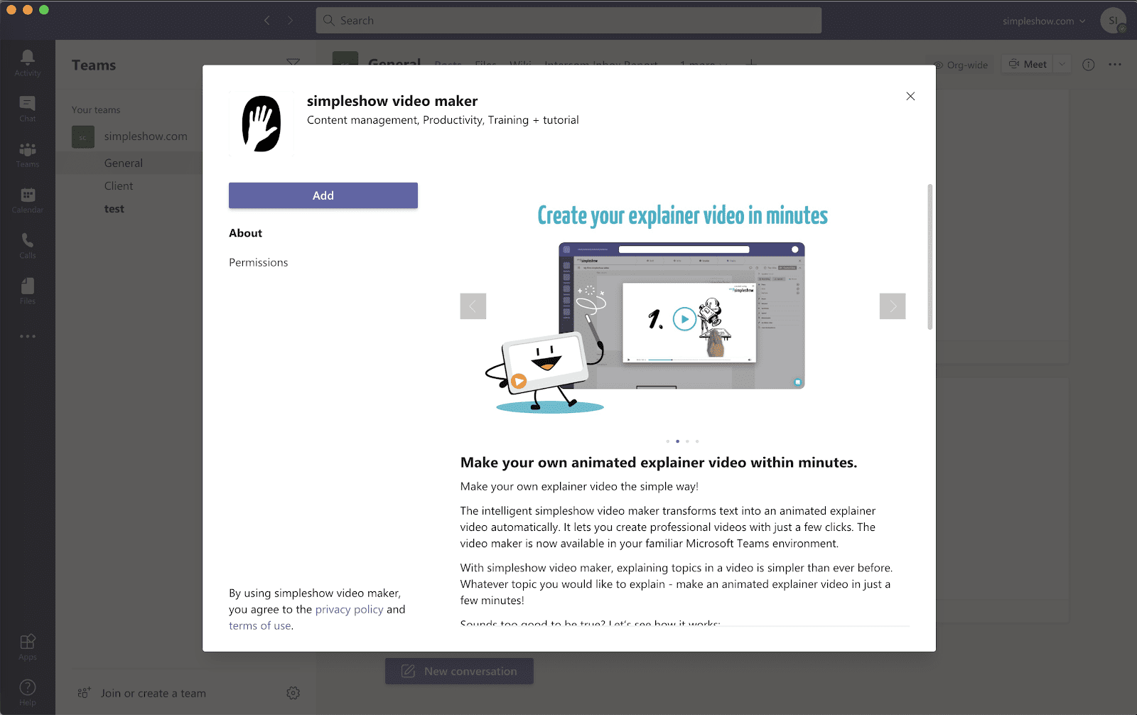 simpleshow video maker enables the creation of animated explainer videos within Microsoft Teams